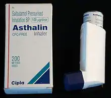 MDIs were first developed in 1955 by Riker Laboratories, now a subsidiary of 3M Healthcare.[7] At that time MDIs represented a convergence of two relatively new technologies, the CFC propellant and the Meshburg metering valve which was originally designed for dispensing perfume.[8] The initial design by Riker used a glass canister coated with a vinyl plastic to improve its resilience.[7] By 1956 Riker had developed two MDI based products, the Medihaler-Ept containing epinephrine and the Medihaler-Iso containing Isoprenaline.[2] Both products are agonists which provide short term relief from asthma symptoms and have now largely been replaced in asthma treatment by salbutamol, which is more selective.