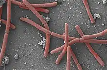 In taxonomy, Methanothermobacter is a genus of the Methanobacteriaceae.[1] The species within this genus are thermophilic and grow best at temperatures between 55 °C and 65 °C. They use carbon dioxide and hydrogen as substrates to produce methane for energy.[2]