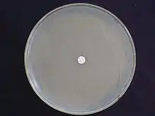 Mueller-Hinton agar showing MRSA resistant to an oxacillin disk
