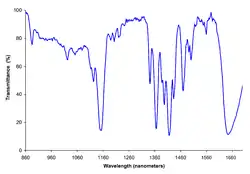 Near IR absorption spectrum of dichloromethane showing complicated overlapping overtones of mid IR absorption features.