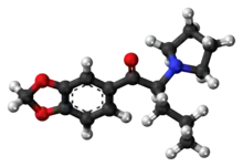 Methylenedioxypyrovalerone (MDPV) is a stimulant of the cathinone class that acts as a norepinephrine–dopamine reuptake inhibitor (NDRI).[2][3] It was first developed in the 1960s by a team at Boehringer Ingelheim.[4] Its activity at the dopamine transporter is six times stronger than at the norepinephrine transporter and it is virtually inactive at the serotonin transporter.[2] MDPV remained an obscure stimulant until around 2004 when it was reportedly sold as a designer drug. Until it was banned in 2011, products containing MDPV and labeled as bath salts were sold as recreational drugs in gas stations and convenience stores in the United States, similar to the marketing for Spice and K2 as incense.[5]