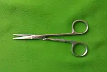 Metzenbaum scissors are surgical scissors designed for cutting delicate tissue and blunt dissection. The scissors come in variable lengths and have a relatively long shank-to-blade ratio. They are constructed of stainless steel and may have tungsten carbide cutting surface inserts. The blades can be curved or straight, and the tips are usually blunt. This is the most common type of scissors used in organ-related operations.