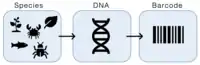 Genetic diversity is varying from species to species. Therefore, it is possible to identify distinct species by the recovery of a short DNA sequence from a standard part of the genome. This short sequence is defined as barcode sequence. Requirements for a specific part of the genome to serve as barcode should be a high variation between two different species, but not much differences in the gene between two individuals of the same species to make differentiating individual species easier.[4][5] For both bacteria and archaea the 16S rRNA/rDNA gene is used. It is a common housekeeping gene in all prokaryotic organisms and therefore is used as a standard barcode to assess prokaryotic diversity. For protists, the corresponding 18S rRNA/rDNA gene is used.[6] To distinguish different species of fungi, the ITS (Internal Transcribed Spacer) region of the ribosomal cistron is used.[7]