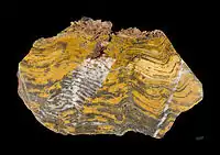 Microbialite is a rock or benthic sedimentary deposit made of carbonate mud (particle diameter < 5 μm) that is formed with the mediation of microbes. The constituent carbonate mud is a type of automicrite, or authigenic carbonate mud, and therefore it precipitates in situ instead of being transported and deposited. Been formed in situ, a microbialite can be seen as a type of boundstone where reef builders are microbes, and precipitation of carbonate is biotically induced instead of forming tests, shells or skeletons. Bacteria can precipitate carbonate both in shallow and in deep water (except for Cyanobacteria) and so microbialites can form regardless of the sunlight.[2]