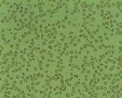 | Microcytosis is the presence of red cells that are smaller than normal. Normal adult red cell has a diameter of 7.2 µm. Microcytes are common seen in with hypochromia in iron-deficiency anaemia, thalassaemia trait, congenital sideroblastic anaemia and sometimes in anaemia of chronic diseases. | |