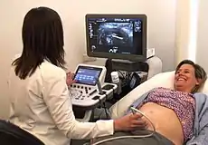 First trimester screening varies by country. Women are typically offered a Pap smear and urine analysis (UA), and blood tests including a complete blood count (CBC), blood typing (including Rh screen), syphilis, hepatitis, HIV, and rubella testing.[9] Additionally, women may have chlamydia testing via a urine sample, and women considered at high risk are screened for sickle cell disease and thalassemia.[9] Women must consent to all tests before they are carried out. The woman's blood pressure, height and weight are measured. Her past pregnancies and family, social, and medical history are discussed. Women may have an ultrasound scan during the first trimester which may be used to help find the estimated due date. Some women may have genetic testing, such as screening for Down syndrome. Diet, exercise, and discomforts such as morning sickness are discussed.[9]