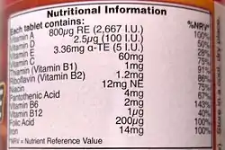 - Vitamin A: 1 IU is the biological equivalent of 0.3 μg retinol, or of 0.6 μg beta-carotene[7][8][lower-alpha 1]