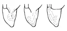 During normal mitral valve function fluid jets from the left atrium through the mitral valve into the left ventricle. The vortex created from this jetting travels towards the apex of the left ventricle because of the asymmetric shape of the mitral valve leaflets. This vortex rotates clockwise until the isovolumetric contraction of the left ventricle opens the aortic valve and redirects the fluid flow from the apex of the left ventricle to the systemic circulation and the rest of the body.