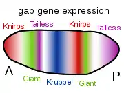 Morphogenesis is controlled by a "toolkit" of genes which switch development on and off at precise times and places. Here, gap genes in the fruit fly are switched on by genes such as bicoid, setting up stripes which create the body's segmental form.