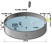The Morris water navigation task was conceived by Richard G. Morris (then at the University of St Andrews) in 1981 as an alternative to the radial maze.[10] The test was developed to study spatial learning and how it differed from other forms of associative learning.[11] Originally rats, now more commonly mice, were placed in an open pool and the latency to escape was measured for up to six trials a day for 2–14 days.[12] Several variables are used to evaluate an animal's performance. For example, a "probe trial" measures how long the test subject spends in the "target quadrant" (the quadrant with the hidden platform).[12] More elaborate trials alter the location of the hidden platform, or measure distance spent swimming in the pool before reaching the platform.[12] Over the years, many different versions of this test have been performed with a large amount of variables. For example, neuroscientists examine the effect of differences of sex, weight, strength, stress levels, age, and strain of species. The results vary dramatically, so researchers cannot draw conclusions unless these variables are kept constant.[1] Many different size pools have been used throughout the history of this task, but it has been shown that this does not have a significant impact on the results of the test.[13] In early versions of the task, researchers only timed latency to escape, however video tracking devices are now routinely used to measure the path to escape, time spent in each quadrant, and distance traveled in the pool.[14]