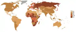- Crude death rate (per 1,000 population) based on World Population Prospects The 2008 Revision, United Nations. Retrieved 22 June 2010