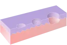 Excoriation is a term sometimes used to describe a breach of the epithelium which is deeper than an erosion but shallower than an ulcer. This type of lesion is tangential to the rete pegs and shows punctiform (small pinhead spots) bleeding, caused by exposed capillary loops.[4]