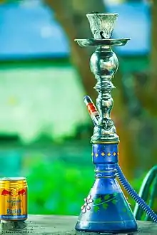 Hookahs (हुक़्क़ा), especially wooden ones, are popular in Nepal. Hookah usage is considered to symbolize family elitism historically. Today, however, hookahs have become popular among tourists and young people.[10]