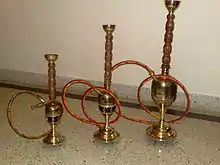 Koyilandy, a small fishing town on the west coast of India, once made and exported hookahs extensively. These are known as Malabar Hookhas or Koyilandy Hookahs. Today these intricate hookahs are difficult to find outside of Koyilandy and not much easier to find in Koyilandy itself.