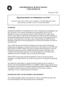 - "Bipartisan Health Care Stabilization Act of 2017" (PDF). Congressional Budget Office. Archived from the original (PDF) on 25 October 2017. Retrieved 26 October 2017.