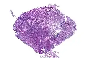 An ectopic pancreas is an anatomical abnormality in which pancreatic tissue has grown outside its normal location and without vascular or other anatomical connections to the pancreas.[2] It is a congenital disease[2] and is also known as heterotopic, accessory, or aberrant pancreas.[3]