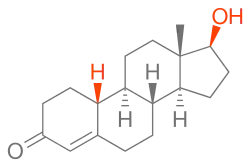 Nandrolone, also known as 19-nortestosterone (19-NT) or as estrenolone, as well as estra-4-en-17β-ol-3-one or 19-norandrost-4-en-17β-ol-3-one,[43] is a naturally occurring estrane (19-norandrostane) steroid and a derivative of testosterone (androst-4-en-17β-ol-3-one).[2][11] It is specifically the C19 demethylated (nor) analogue of testosterone.[2][11] Nandrolone is an endogenous intermediate in the production of estradiol from testosterone via aromatase in mammals including humans and is present in the body naturally in trace amounts.[44] It can be detected during pregnancy in women.[45] Nandrolone esters have an ester such as decanoate or phenylpropionate attached at the C17β position.[2][11]