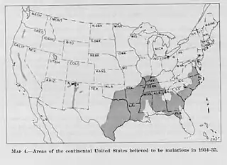 Prior to the establishment of the NMEP, malaria had been endemic across much of the United States. By the 1930s, it had become concentrated in 13 southeastern states. (For example, in the Tennessee River Valley it had a prevalence of about 30% in 1933.)