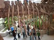 Birds and reptiles have bony uncinate processes on their ribs that project caudally from the vertical section of each rib.[19] These serve to attach sacral muscles and also aid in allowing greater inspiration. Crocodiles have cartilaginous uncinate processes.