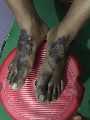 Necrolytic acral erythema is a cutaneous condition that is a manifestation of hepatitis C viral infection or zinc deficiency.[2]