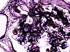 Causes include a number of kidney diseases such as focal segmental glomerulosclerosis, membranous nephropathy, and minimal change disease.[1][2] It may also occur as a complication of diabetes or lupus.[1] The underlying mechanism typically involves damage to the glomeruli of the kidney.[1] Diagnosis is typically based on urine testing and sometimes a kidney biopsy.[1] It differs from nephritic syndrome in that there are no red blood cells in the urine.[2]