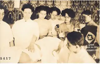 La Cruz Blanca Neutral was a volunteer infirmary and relief service founded by Elena Arizmendi Mejia in 1911.[1][2][3] She was enrolled at the School of Nursing of the Santa Rosa Hospital (now the School of Nursing at the University of the Incarnate Word) in San Antonio, Texas when the war broke out. Her school was next door to the Texas residence of her family friend whom she supported, Francisco I. Madero, who challenged Porfirio Díaz for the presidency in 1910, was jailed by Díaz but escaped and fled to Texas.[4] Reports of the war, casualties and the refusal of the Red Cross to treat insurgents,[5] caused Arizmendi to return to Mexico City via train on 17 April 1911. Once there, she arranged a personal meeting with the head of the Red Cross organisation. When the director reiterated that they would not treat revolutionaries, Arizmendi decided to found an organisation that would treat her countrymen. She and her brother, Carlos, rallied medical students and nurses to the cause.[4]