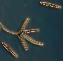 ![]() Fungal cells (black lines) in infected brain tissue (cyan) | |