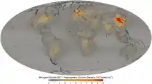 In May 2015, the National Green Tribunal directed Delhi and other states in India to ban diesel vehicles over 10 years old as a measure to reduce nitrogen dioxide emission that may result in nitrogen dioxide poisoning.[31] In 2008, the report of United Kingdom committee on the medical effects of air pollutants (COMEAP) suggested that air pollution is the cause of about 29,000 deaths in UK.[32] The WHO urban air quality database estimated Delhi's mean annual PM 10 levels in 2010 as 286 μg /m3 and London as 23 μg /m3. In 2014, the database estimated Delhi's annual mean PM 2.5 particulate matter levels in 2013 as 156 μg /m3 whereas, London have only 8 μg /m3 in 2010 but the nitrogen dioxide in London breach the European Union's standard.[33] In 2013, the annual mean nitrogen dioxide level in London was estimated as 58 μg /m3 but the save and "threshold limit value" is 40 μg /m3.[34] In March 2015, Brussels took the United Kingdom into court for breaching emissions limits of nitrogen dioxide at its coal-fired Aberthaw power stations in Wales. The plant operated under a permit allowing emissions of 0.0012 μg/m3, which is more than twice the 0.000 5μg /m3 limit specified in the EU's large combustion plant directive.[35]