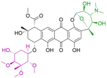 Anthracycline biosynthesis involves the construction of an aglycone core (by a type II polyketide synthase) to which one or more sugar residues are attached. Nogalamycin consists of three components: