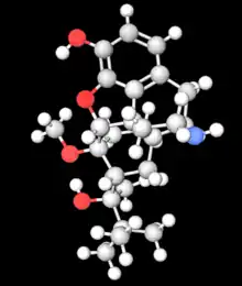 Norbuprenorphine is a major active metabolite of the opioid modulator buprenorphine. It is a μ-opioid, δ-opioid, and nociceptin receptor full agonist,[1][2] and a κ-opioid receptor partial agonist.[2] In rats, unlike buprenorphine, norbuprenorphine produces marked respiratory depression but with very little antinociceptive effect.[3] In explanation of these properties, norbuprenorphine has been found to be a high affinity P-glycoprotein substrate, and in accordance, shows very limited blood-brain-barrier penetration.[3]
