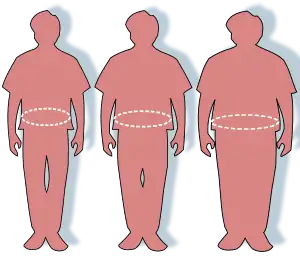 Silhouettes and waist circumferences representing optimal, overweight, and obese