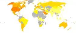 A 2016 review supported excess food as the primary factor.[95][96] Dietary energy supply per capita varies markedly between different regions and countries. It has also changed significantly over time.[94] From the early 1970s to the late 1990s the average food energy available per person per day (the amount of food bought) increased in all parts of the world except Eastern Europe. The United States had the highest availability with 3,654 calories (15,290 kJ) per person in 1996.[94] This increased further in 2003 to 3,754 calories (15,710 kJ).[94] During the late 1990s Europeans had 3,394 calories (14,200 kJ) per person, in the developing areas of Asia there were 2,648 calories (11,080 kJ) per person, and in sub-Saharan Africa people had 2,176 calories (9,100 kJ) per person.[94][97] Total food energy consumption has been found to be related to obesity.[98]