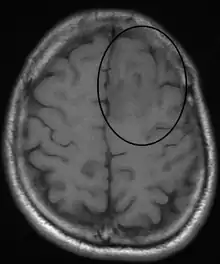 Oligodentroglioma arise mainly in the frontal lobe and in 50–80% of cases, the first symptom is the onset of seizure activity, without having any symptoms beforehand. Headaches combined with increased intracranial pressure are also a common symptom of oligodendroglioma. Depending on the location of the tumor many different neurological deficits can be induced, including, but not limited to, visual loss, motor weakness and cognitive decline. A computed tomography (CT) or magnetic resonance imaging (MRI) scan is necessary to characterize tumor size, location, and hetero- or homogeneity. Final diagnosis relies on biopsy and histopathologic examination of the tumor mass.