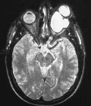 Optic nerve glioma (or optic glioma), a form of glioma which affects the optic nerve, is often one of the central nervous system manifestations of neurofibromatosis 1.[1][2]