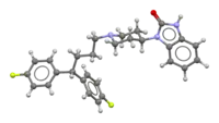 Pimozide (sold under the brand name Orap) is an antipsychotic drug of the diphenylbutylpiperidine class. It was discovered at Janssen Pharmaceutica in 1963. It has a high potency compared to chlorpromazine (ratio 50-70:1). On a weight basis it is even more potent than haloperidol. It also has special neurologic indications for Tourette syndrome and resistant tics. The side effects include akathisia, tardive dyskinesia, and, more rarely, neuroleptic malignant syndrome and prolongation of the QT interval.