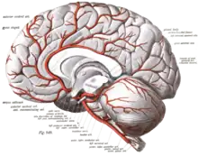 The anterior cerebral artery, with the A2 (second) branch clearly visible (seen on the left side of the image)