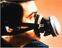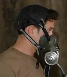 An orinasal mask, oro-nasal mask or oral-nasal mask[1] is a breathing mask that covers the mouth and the nose only. It may be a complete independent item, as an oxygen mask, or on some anaesthetic apparatuses, or it may be fitted as a component inside a fullface mask on underwater breathing apparatus, a gas mask or an industrial respirator to reduce the amount of dead space. It may be designed for its lower edge to seal on the front of the lower jaw or to go under the chin.