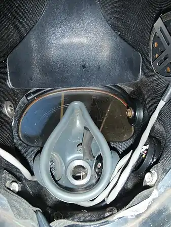 Orinasal mask inside a KM37 diving helmet