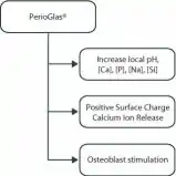 It is believed to work through the active stimulation of osteoblast proliferation and differentiation as evidenced by increased levels of DNA synthesis and of the osteoblast markers osteocalcin and alkaline phosphatase. Through an ionic exchange, Bioglass first acts as a scaffolding around and through which new bone forms. In vivo studies have demonstrated that the osteostimulative properties result in stimulation and acceleration of new bone formation in an osseous defect. (FDA 510(k) clearance, February 2006 for PerioGlas).