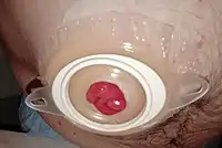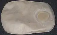 An ostomy pouching system[1] is a prosthetic medical device that provides a means for the collection of waste from a surgically diverted biological system (colon, ileum, bladder) and the creation of a stoma. Pouching systems are most commonly associated with colostomies, ileostomies, and urostomies.[2]