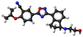 Ozanimod, sold under the brand name Zeposia, is an immunomodulatory drug for the treatment of relapsing multiple sclerosis (RMS), to include clinically isolated syndrome, relapsing-remitting disease, and active secondary progressive disease, in adults.[4][2][5][6] It acts as a sphingosine-1-phosphate (S1P) receptor agonist, sequestering lymphocytes to peripheral lymphoid organs and away from their sites of chronic inflammation.[6] Ozanimod was discovered by The Scripps Research Institute in San Diego, by the labs of Hugh Rosen and Edward Roberts, and licensed to the biotech company Receptos Inc. [7] Receptos was acquired by Celgene for $7.2 billion.[8]