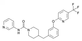 PF-3845 is a selective inhibitor of fatty acid amide hydrolase.[1] It results in increased levels of anandamide and results in cannabinoid receptor-based effects. It has anti-inflammatory action in mice colitis models. Antidiarrheal and antinociceptive effects were also seen in mouse models of pain.[2]