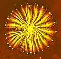 A colony generated by P. vortex sp. bacteria: The colony diameter is 5 cm and the colors indicate the bacterial density (bright yellow for high density). The bright dots are the vortices described in the text.