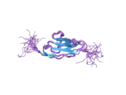 In humans, it appears that seven different isoforms exist, some of which arise through alternative splicing.[11] In mice, three major isoforms of palladin arise from a single gene. These isoforms contain between three and five copies (depending on the isoform) of an Ig-like domain and between one and two copies of a polyproline domain.[6]