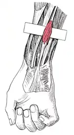 | Antagonist | Extensor carpi radialis brevis, Extensor carpi radialis longus, Extensor carpi ulnaris |