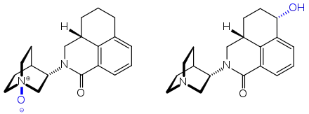 Orally taken palonosetron is absorbed well from the gut and has a bioavailability of 97%. Highest blood plasma levels are reached after 5.1±1.7 hours, independently of food intake, and plasma protein binding is 62%. 40% of the substance are eliminated in the unchanged form, and a further 45–50% are metabolized by the liver enzyme CYP2D6 and to a lesser extent by CYP3A4 and CYP1A2. The two main metabolites, the N-oxide and a hydroxy derivative, have less than 1% of palonosetron's antagonistic effect and are thus practically inactive.[5][6]