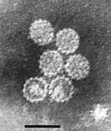 Electron micrograph of papillomavirus, scale bar 70 nm