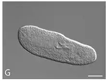 Paramecium biaurelia is a species of unicellular ciliates under the genus Paramecium, and one of the cryptic species of Paramecium aurelia.[2] It is a free-living protist in water bodies and harbours several different bacteria as endosymbionts.[3][4][5] Although the bacteria are parasites by definition, they also exhibit mutual relationship with the protist by providing survival benefits.[6] It is used as an organism model in the study of the effects of gravitational forces in different environments.[7][8][9]