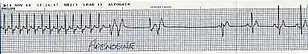 Lead II electrocardiogram strip showing PSVT with a heart rate of about 180.