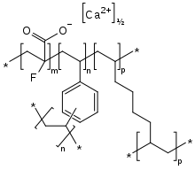 | Formula | [(C3H3FO2)182·(C10H10)8·(C8H14)10]n [Ca91(C3H2FO2)182·(C10H10)8·(C8H14)10]n (calcium salt) |